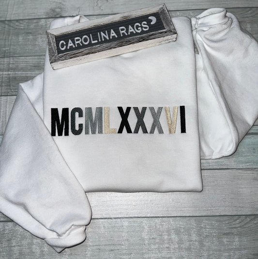Roman Numeral Birth Year Embroidered Sweatshirt